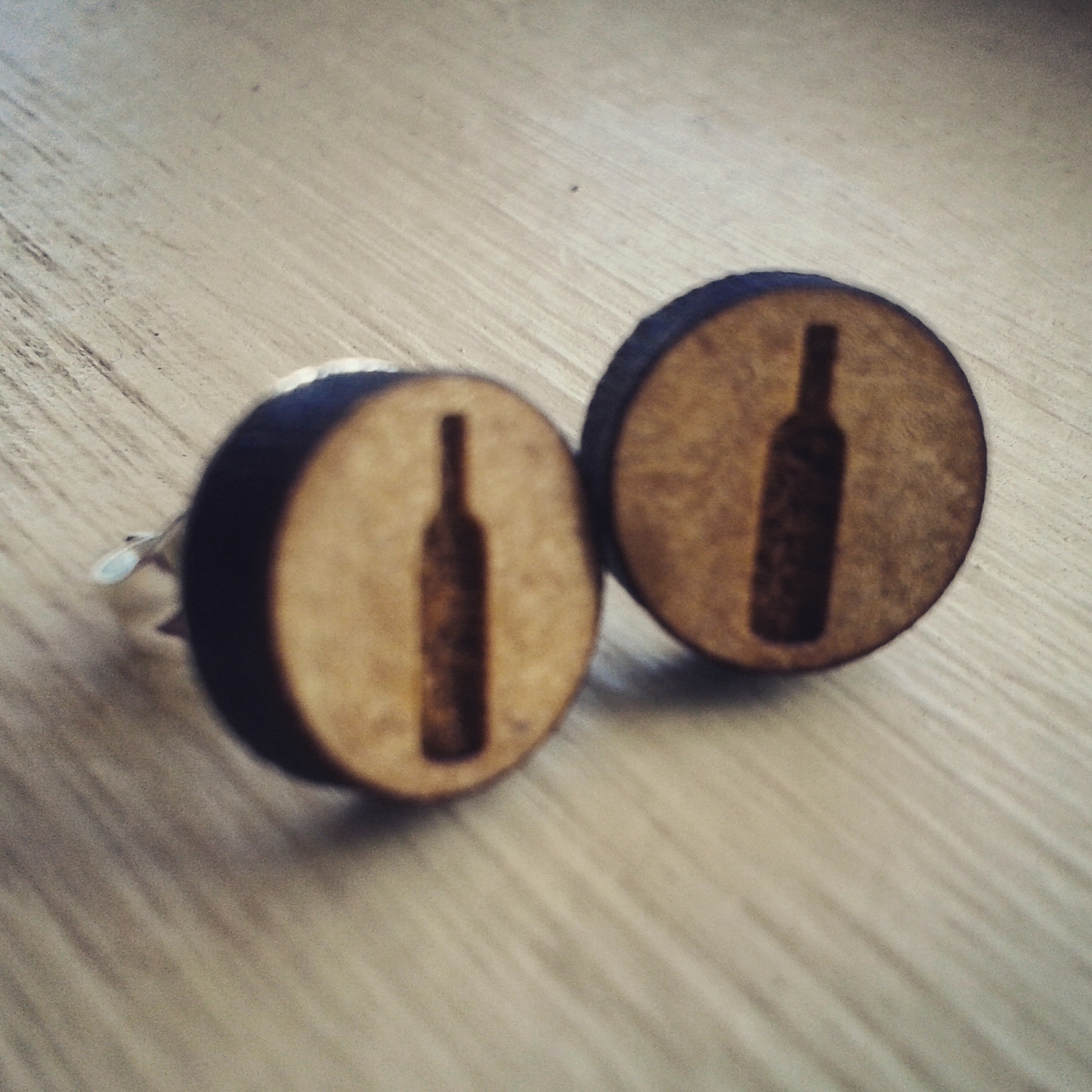 10mm stud earrings, laser engraved with a wine bottle image.